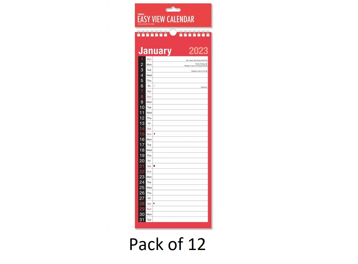 Tallon Red & Black Commercial Superslim Calendar - Pack of 12